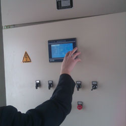 該項目為泵房改造項目,系統(tǒng)流量600m3/h,揚程118m,采用南方泵業(yè)5臺不銹鋼多級立式離心泵并聯(lián)組成的DRL120-60-1成套變頻供水設備。泵組過流部件均采用SUS304不銹鋼材質(zhì),泵出水口均加裝軟接,設備出口端加裝了DN300電磁流量計直接讀取出水流量,并采用數(shù)據(jù)線將電磁流量計數(shù)據(jù)傳輸至PLC直接顯示在屏幕上,因高爾夫球場草坪的噴淋瞬間流量變化比較大,同時對不同天氣不同時段噴水的量要求精度較高,這樣能使用戶更直觀的監(jiān)控到瞬間用水量及累積用水量。