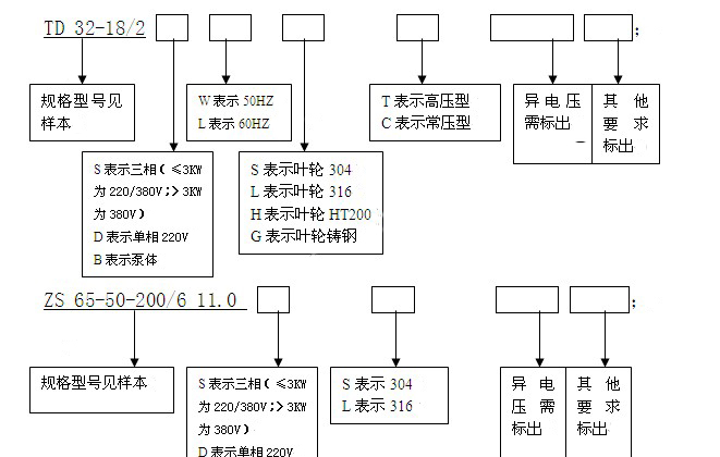 南方水泵產品型號簡寫說明